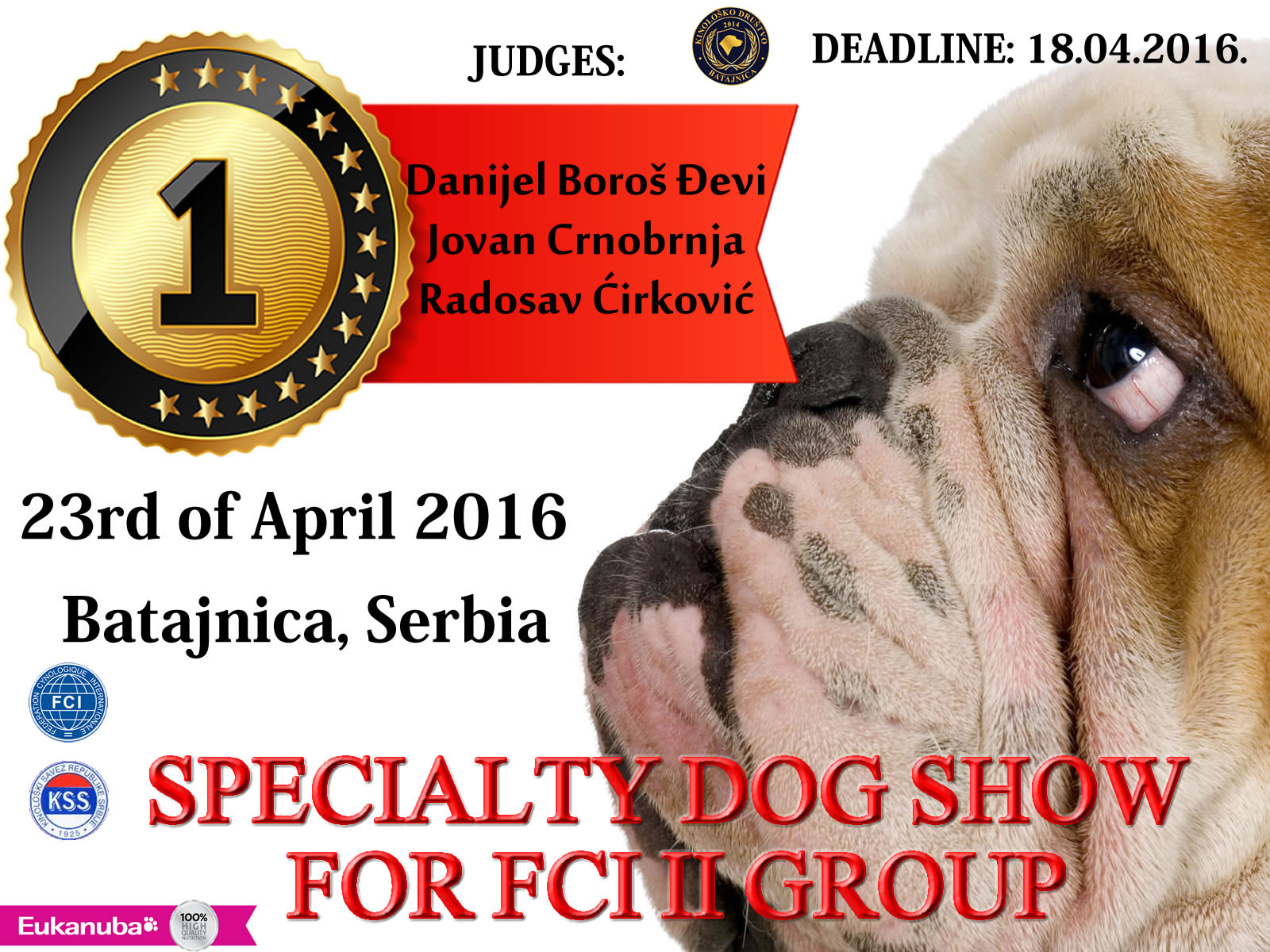 Kennel Club “Batajnica” is organizing the Specialty Dog Show for FCI II Group on April 23 2016. It will be held at ZEMUN PARK. The show begins at 10:00 am.