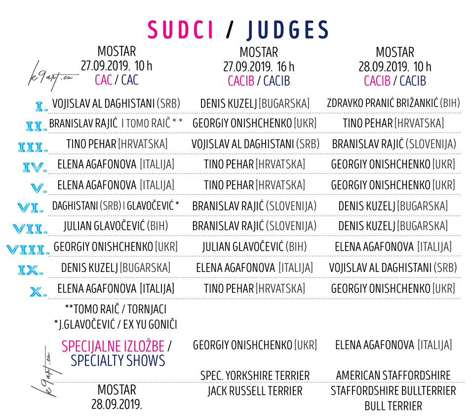 U ime Kinološkog saveza Herceg-Bosne i KU MOSTAR iz Mostara, pozivamo vas na međunarodnu, nacionalnu i specijalizovanu izložbu pasa svih rasa 27.09.-28.09.2019.