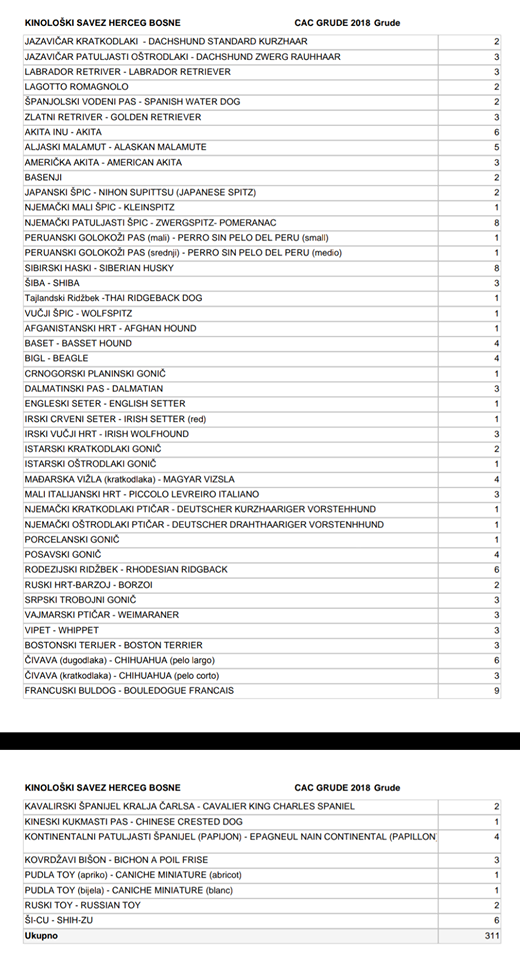 CAC GRUDE- UKUPAN BROJ PASA: 311