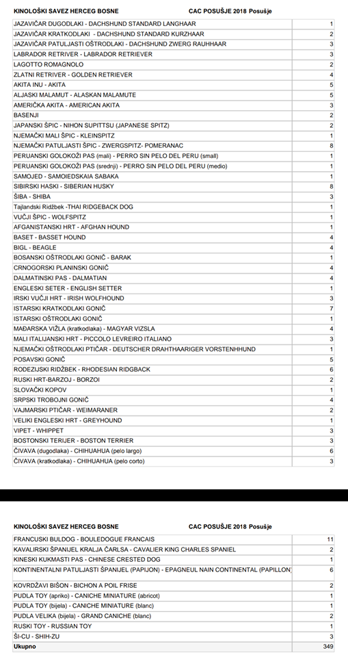 CAC POSUŠJE- UKUPAN BROJ PASA: 349